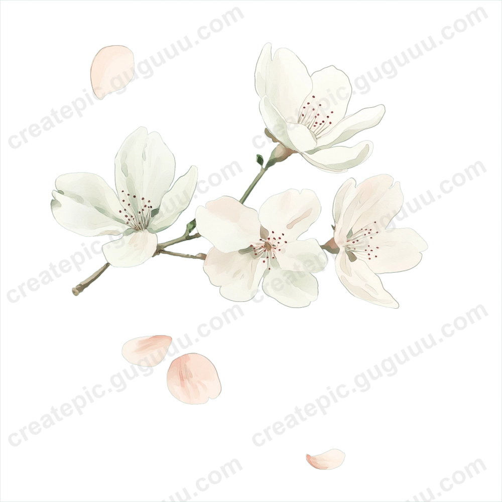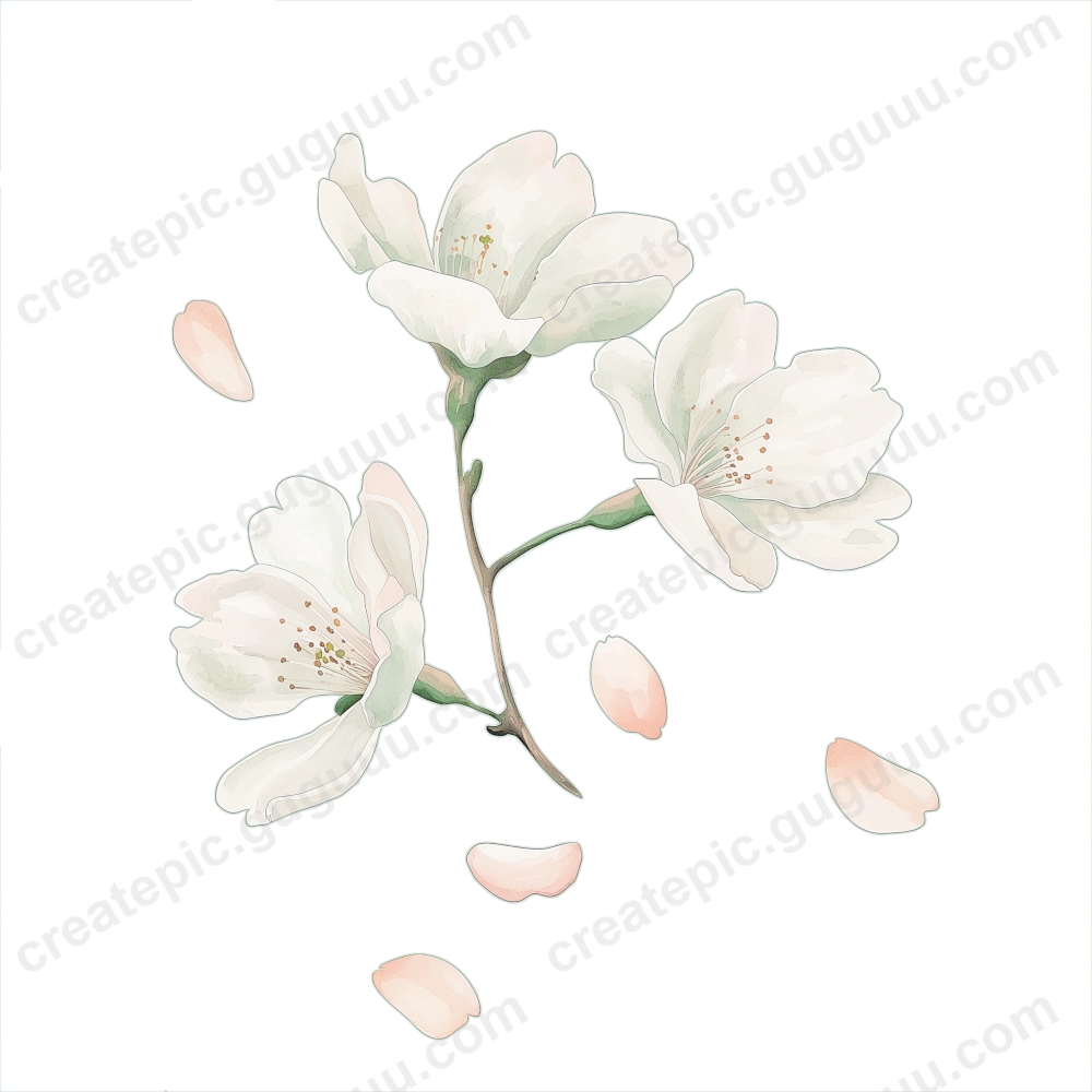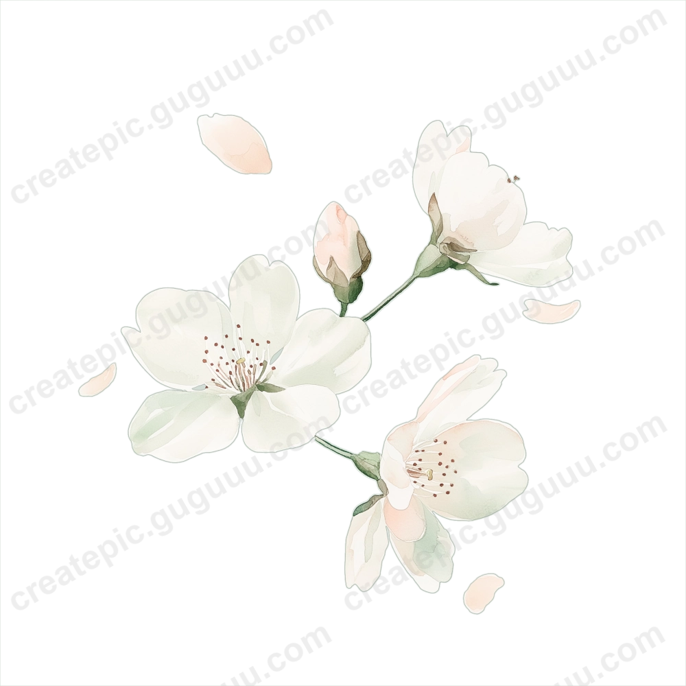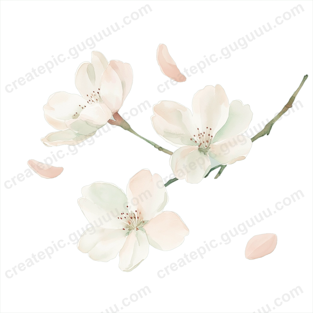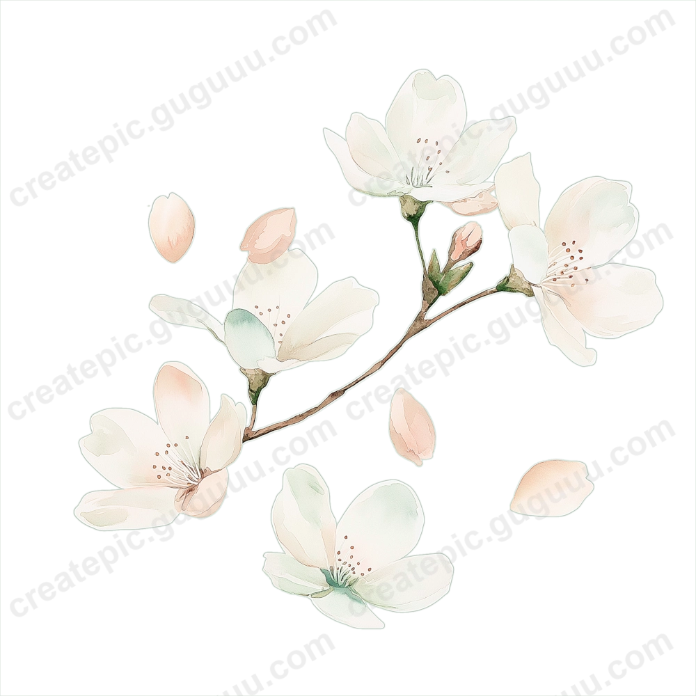 Cherry blossoms symbolize renewal and seasonal beauty, making them a timeless design element. This collection, with its soft watercolor strokes and realistic details, is crafted to inspire and enhance various creative works.