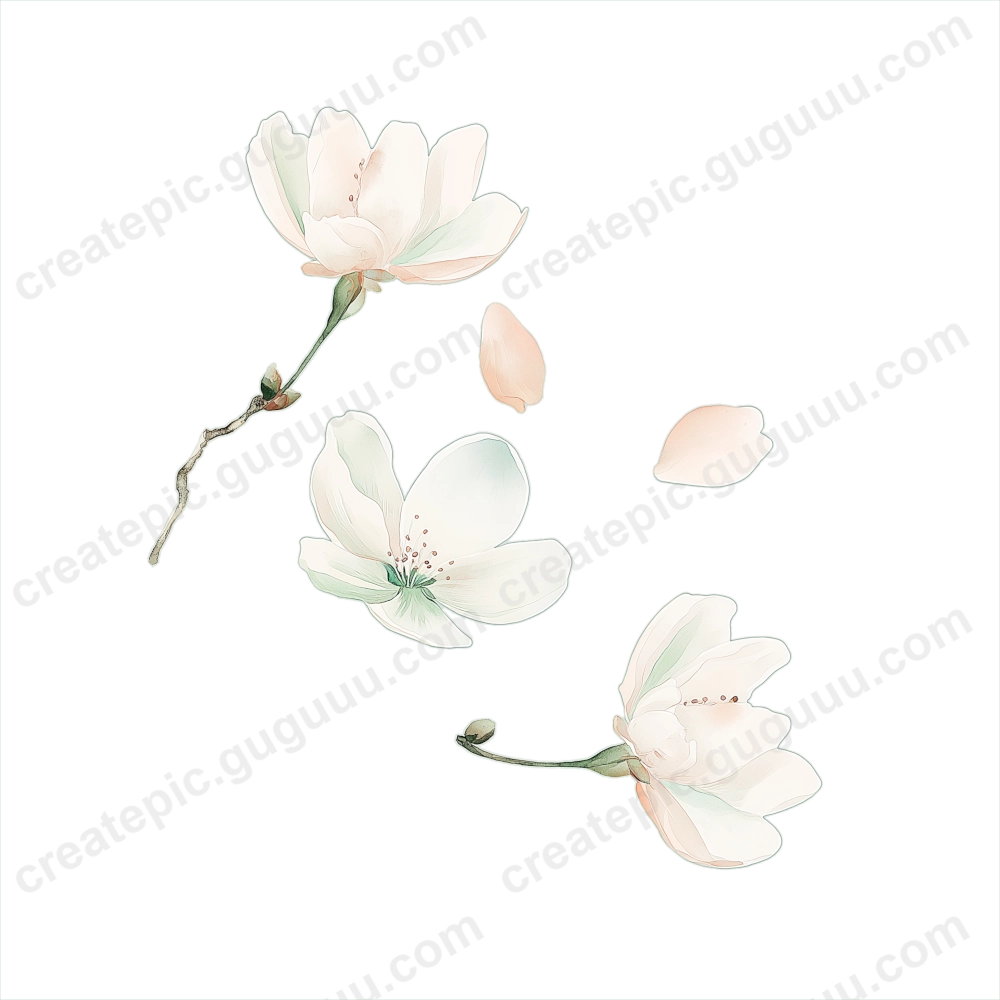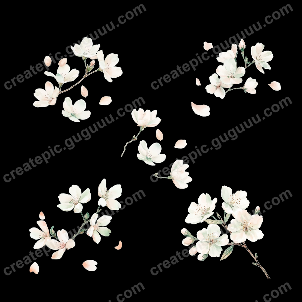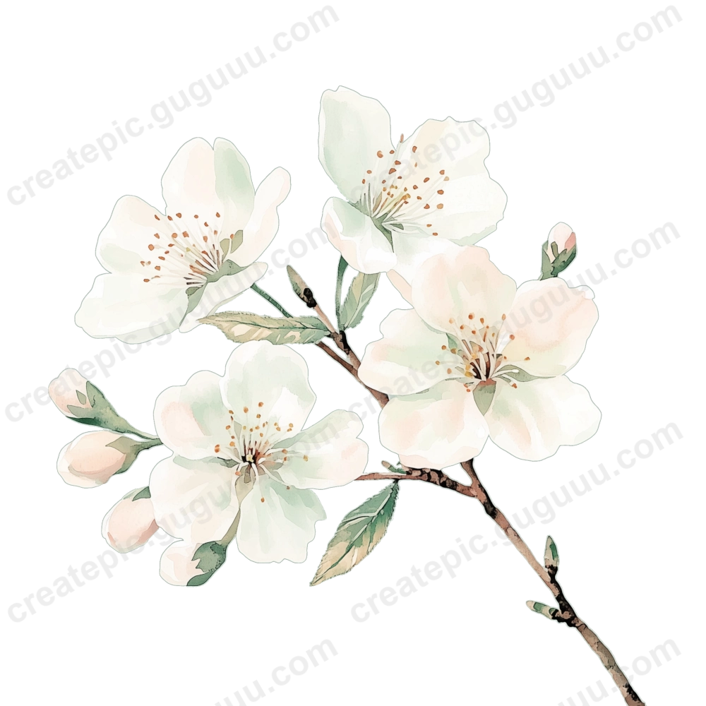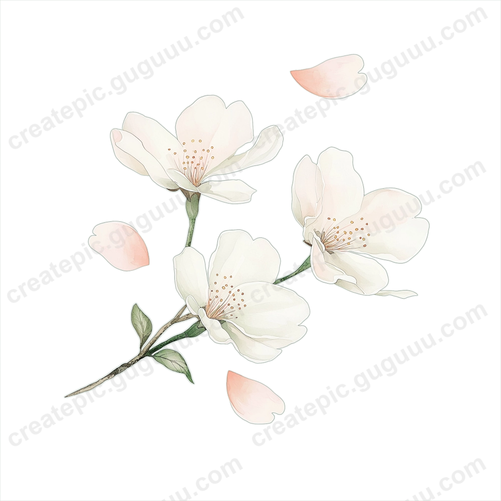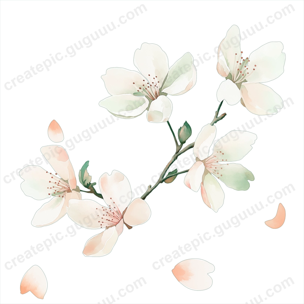 Cherry blossoms symbolize renewal and seasonal beauty, making them a timeless design element. This collection, with its soft watercolor strokes and realistic details, is crafted to inspire and enhance various creative works.
