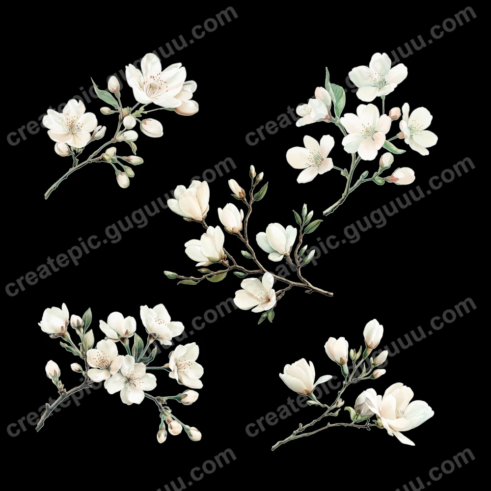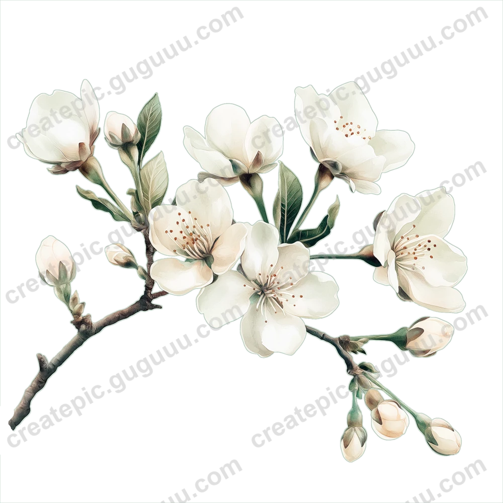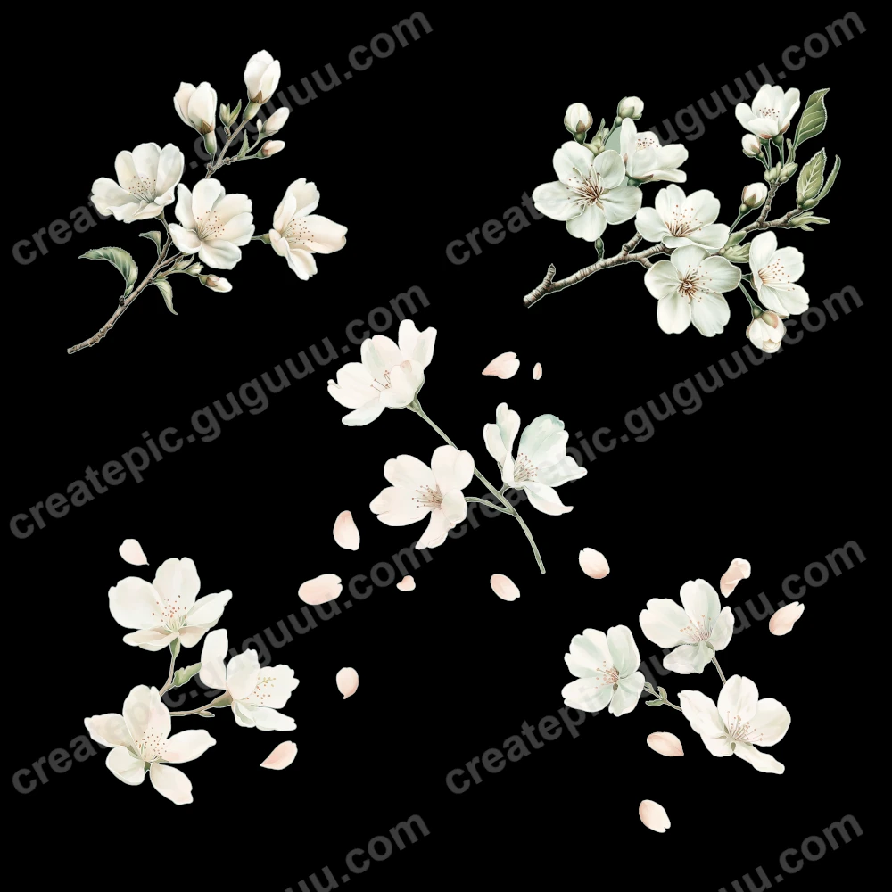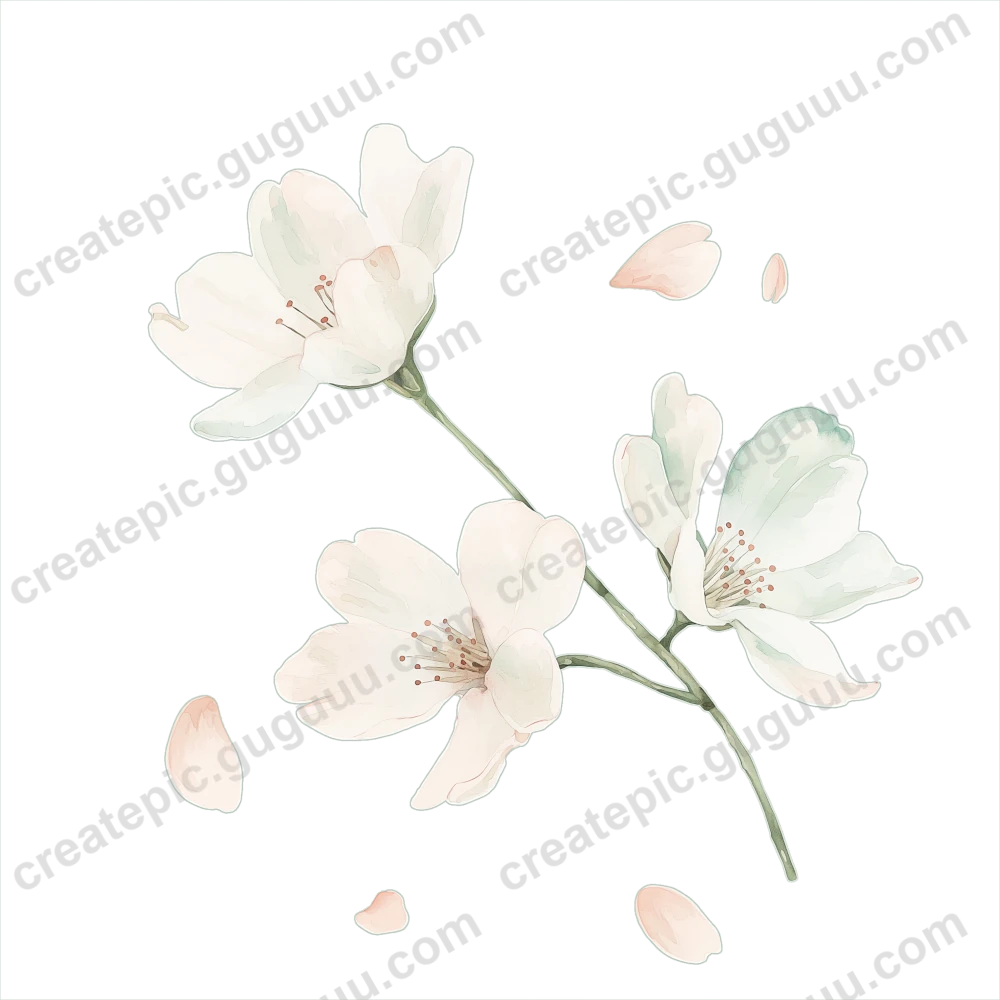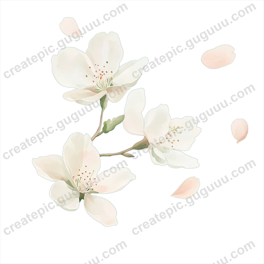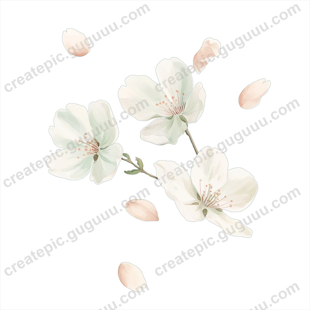 Cherry blossoms symbolize renewal and seasonal beauty, making them a timeless design element. This collection, with its soft watercolor strokes and realistic details, is crafted to inspire and enhance various creative works.